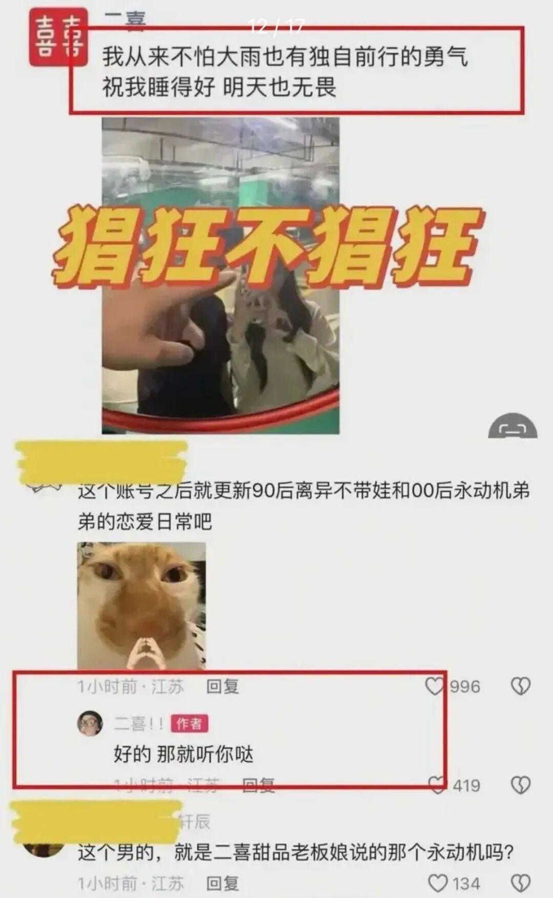 有网友调侃她账号该改名叫“90后离异不带娃&00后永动机弟弟的恋爱日常”,她居然回复“好哒,就听你的”!这挑衅态度,直接把舆论推向高潮!